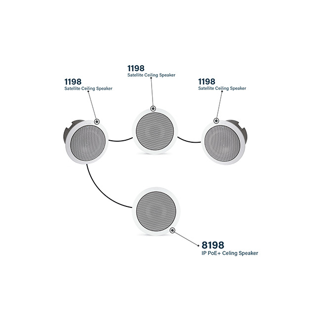 Up to three satellite speakers can be powered and supervised by a main Algo IP speaker. Together, all speakers will broadcast the same voice page or audio file. Satellite speakers are equal in audio performance and identical in form factor to the main IP speaker, maintaining the benefits and advantages of IP paging without the additional costs of network ports, cable drops, and additional licenses