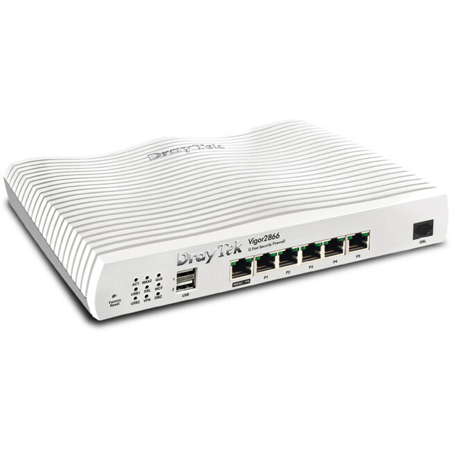 The Vigor 2866 series is DrayTek’s G.Fast / VDSL and Ethernet Multi-WAN Firewall VPN router. Ideally suited to connect directly to Ultrafast G.Fast broadband and Superfast VDSL. Providing advanced Firewall and Content Filtering, Quality of Service and VPN with Gigabit throughput.