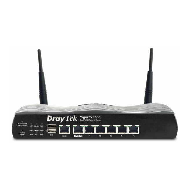 The Vigor 2927 is a Dual-Ethernet WAN router featuring VPN, advanced routing features, firewall, content filtering, bandwidth management and more. It offers high throughput with Load Balancing and Failover connectivity, suitable for handling Fibre to the Premises (FTTP) and Gigabit Internet connections. Offering up to 950Mbps per-WAN of Hardware Accelerated throughput while retaining its full feature set.
