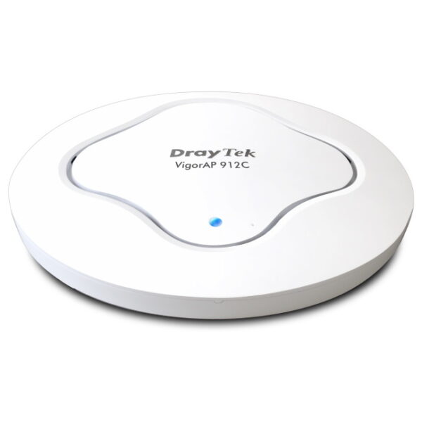 Ceiling Mesh Wireless 802.11ac Range Extender & Access PointVigorAP 912C is a high-performance Mesh Wireless solution, designed to expand the wireless coverage, eliminate Wi-Fi dead zones and significantly reduce the cost of network deployments. It can also be used as a traditional access point either managed or stand alone so has the flexibility to be used how you need it.The VigorAP 912C is a dual-band 802.11ac Wave 2 Mesh Wireless solution, designed to eliminate wireless drop outs, stuttering videos, slow download speeds, poor signal and Wi-Fi dead zones. One access point acts as the controller (Mesh root) and in total up to 8 access points create an easy to manage wireless mesh. Extend coverage without running expensive cabling.Initial setup of the VigorAP 912C is easy with the DrayTek Wireless app, whether it’s creating a new Mesh network or being set up in AP and Range Extender modes, the Quick Start Wizard assists throughout.Manage the VigorAP 912C centrally through the VigorACS central management platform, VigorConnect, Router AP Management, or simply on its own as a stand-alone access point. The VigorAP 912C has the flexibility to be used how you need it.