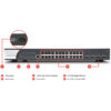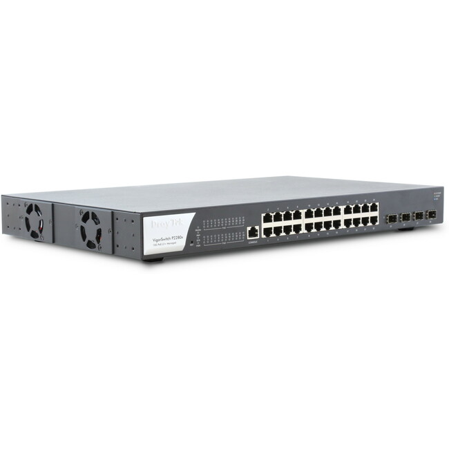 The VigorSwitch P2280x is a PoE (Power over Ethernet) switch, providing power to any PoE-enabled device, most commonly IP phones, wireless access points or IP cameras over the Ethernet cable.