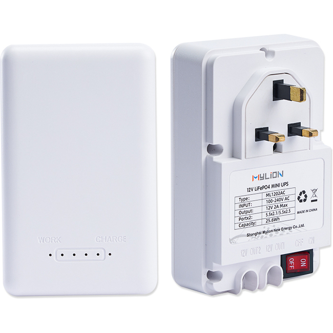 Mylion LiFe PO4 Mini UPS is an Uninterruptible Power Supply which can be used as a standby energy back-up to power your device during a power outage. The system has certified the safest LiFe PO4 lithium ion battery, steady circuit performance and anti-fire plastic casing, over 2000times cycle life. Safety is paramount for us. For this type, Mylion specially set the AC input inside the unit, 110V/240V AC In, 12VDC Output, you needn’t an extra AC Adaptor any more, you also can use it as a smart AC adaptor with battery backup.