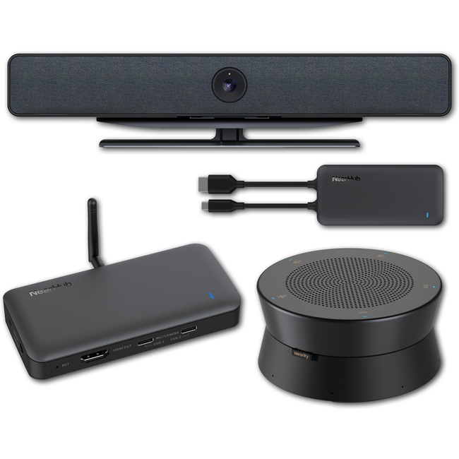 The Nearity bundle-SM has been designed to suit small to medium-sized meeting rooms and consists of the following products: – C30R – A20S – Nearhub Tail – Nearhub Air