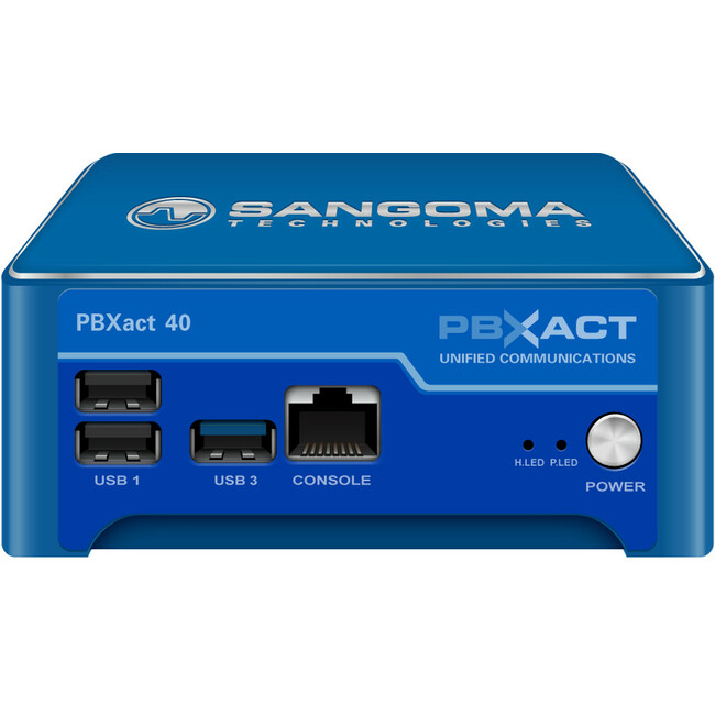 Sangoma PBXact 40 Appliance. In this configuration this system will support up to 40 user extensions. This system comes with the PBXact software installed and 40 user licenses included and support for up to 30 concurrent calls.Specifications of the Appliance are as followed;Table Top and Wall Mount with included bracket4 Onboard GIG Network PortsSingle 120GB SSD driveQuad Core Processor2 GB of Memory1 Year Hardware Warranty5in D X 5in W X 2in HBox size is 11in L X 9.1in W X 3.5in H and weighs 3.5 lbs