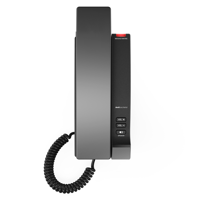The HD100 is designed as a comfortable, slimlinemodern hotel/guest room telephone that offers themost important features such as speed dialing to allhotel facilities and rooms, hands-free calling, andmute.The PoE power supply and the Gigabit Ethernetconnection allow the device to be integrated into acentrally managed, future-proof networkinfrastructure.All settings of the HD100 can of course beadministered centrally. The antibacterial housingprotects against germs and is easy to clean. Thelarge, visual LED call and message indicators as wellas the individual labeling options complete the overallpicture.