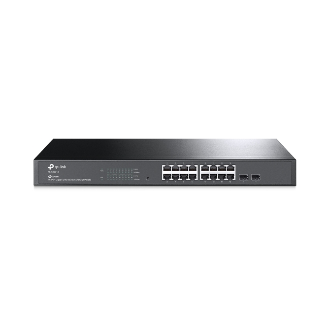 16× Gigabit RJ45 ports and 2× Gigabit SFP slotsCentralized cloud management via the web or the Omada app†Standalone management via web, CLI, SNMP, and RMONStatic Routing helps route internal traffic for higher efficiencyVLAN, ACL, QoS, and IGMP SnoopingFanless design for silent operationDurable metal casing and rackmountable design